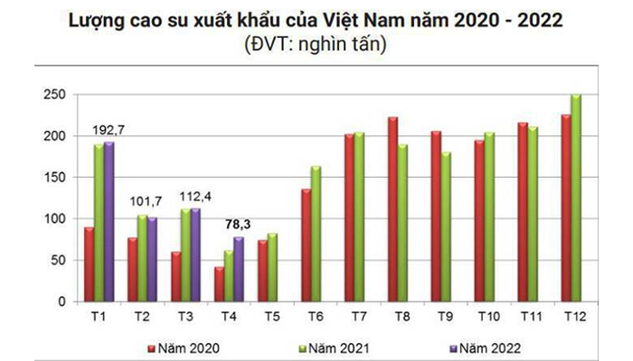 Điều này cũng đang tác động tích cực đến thị trường cao su Việt Nam. Cụ thể, 4 tháng đầu năm, xuất khẩu cao su đạt 485 nghìn tấn, trị giá 857 triệu USD, tăng 4% về lượng và tăng 9% về giá trị so với cùng kỳ năm 2021.