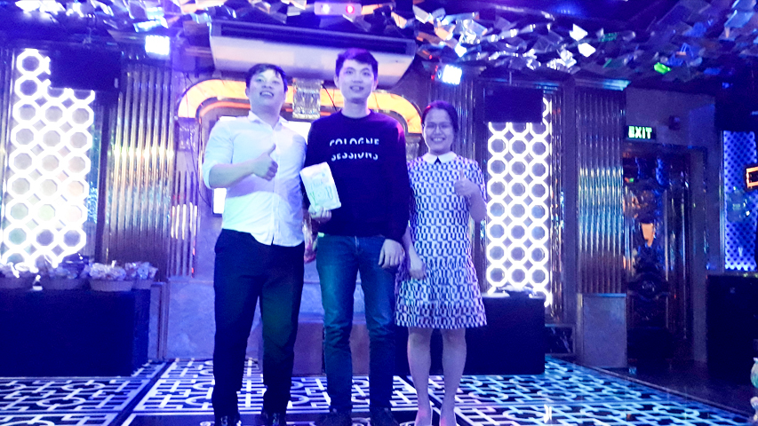 After the lunch, everybody moved to karaoke shop, all people sang many songs and together expressed many singing voices with internal force.