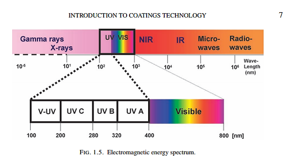 Tia UV là tia sáng có bước sóng nằm trong dải 100-400 nm. Có 4 loại tia UV gồm : UVA, UVB,UVB ,UVC,V-UV ( ngoài ra một số tài liệu còn đề cập đến UV-V - Visible UV ) . Tia UV có năng lượng tương đối lớn. Chính nguồn năng lượng này làm phá vỡ kiên kết của các hóa chất khơi mào ( hay còn gọi là chất hoạt hóa quang học) , từ đó sinh ra gốc tự do và khơi mào phản ứng với các liên kết không no ( thường là nối đôi) có sẵn trong Oligomer/Monomer.