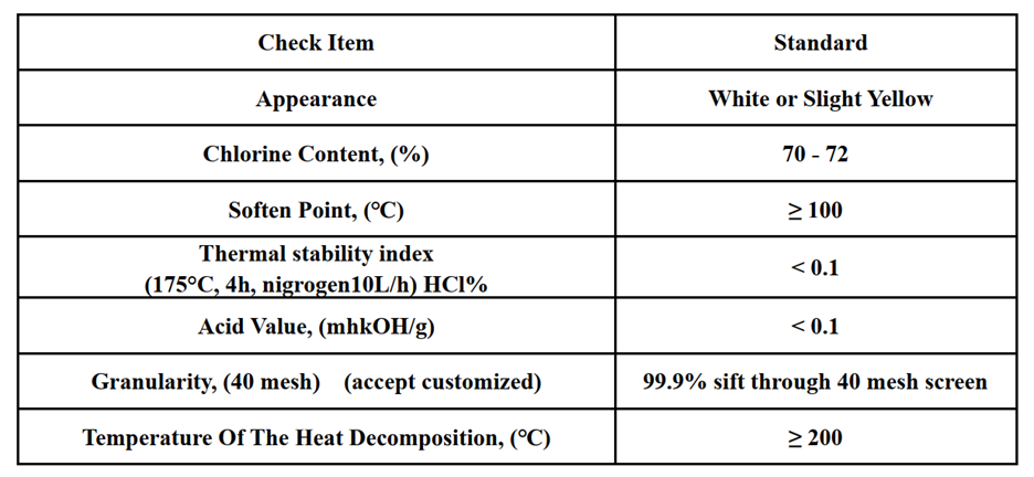 CP70 có dạng rắn màu trắng hoặc vàng nhạt. Công thức phân tử trung bình là C25 H30 Cl22, trọng lượng phân tử trung bình là 1060-1100. Đây là một loại phụ gia chống cháy tuyệt vời với độ ổn định hóa học tốt, kháng hóa chất tốt, chống lão hóa và ổn định nhiệt.