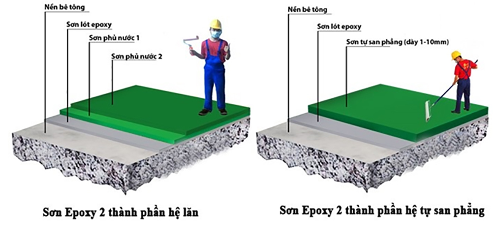 Trên thị trường hiện nay, có 2 dạng sơn Epoxy phổ biến là: Sơn Epoxy hệ lăn và Sơn Epoxy hệ tự san phẳng