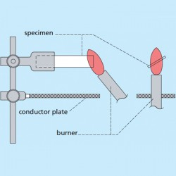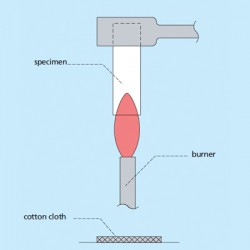 Vật mẫu được thủ nghiệm bén lửa với ngọn lửa ở bên cạnh (phương ngang) hoặc bên dưới (phương dọc) tùy theo tiêu chuẩn kiểm tra với khoảng thời gian nhất định. Với thủ nghiệm đám cháy ngang ngọn lửa chỉ áp dụng 1 lần, trong khi với các thủ nghiệm đám cháy dọc ngọn lửa được áp dụng ít nhất 2 lần.