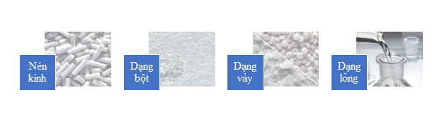 - Hình dạng: Dạng bột, vảy, trứng cá hoặc dạng lỏng (có mùi)