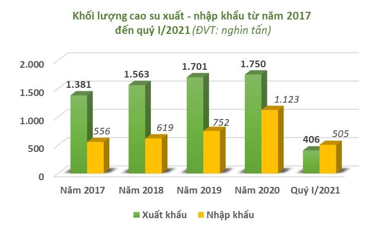 VIỆT NAM BẤT NGỜ NHẬP SIÊU CAO SU TRONG QUÝ I - 2021